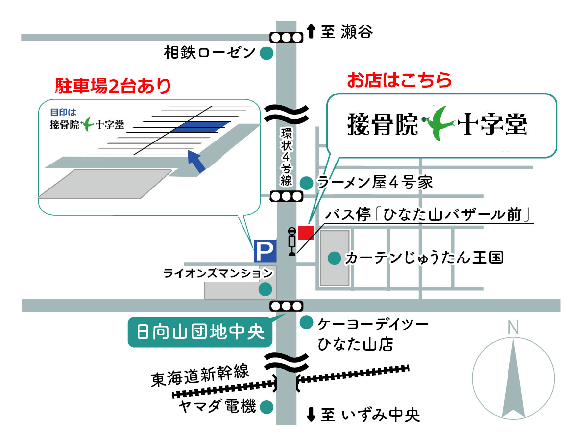 接骨院十字堂は、相鉄線「瀬谷駅」または「いずみ野」が最寄駅です。