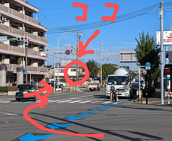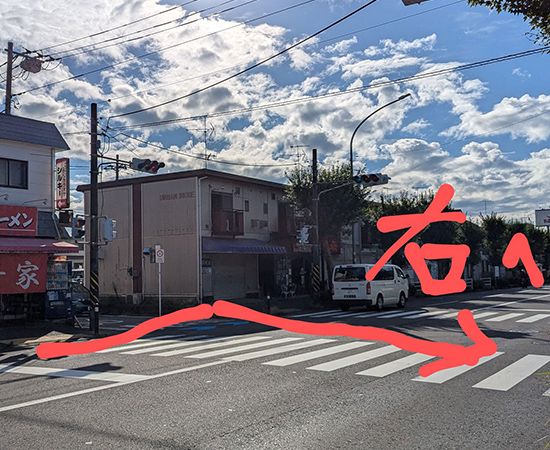 ラーメン4号屋さんの信号を右折