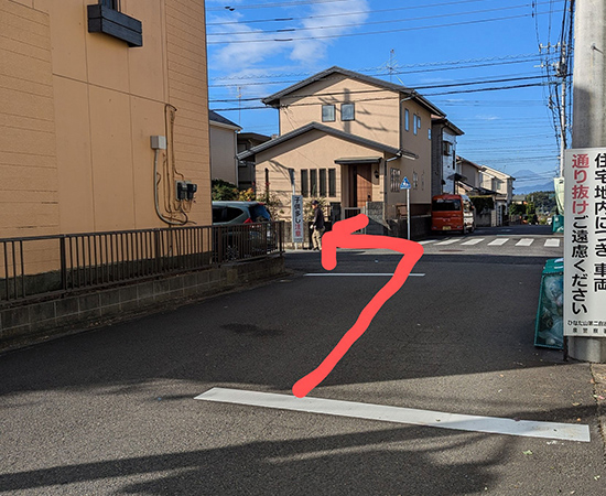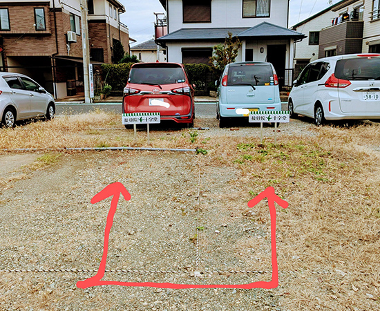 左手に平面駐車場が見えます